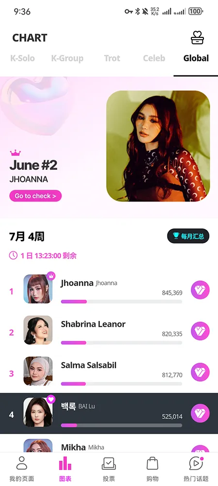 1. 丰富投票活动:可参与首尔音乐奖、梦想演唱会、KM榜单等各类投票,支持喜爱的KPOP偶像,还有全球选秀项目投票,使用专属道具助力。