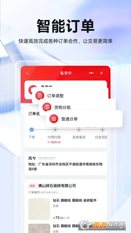 4. 订单管理全面:涵盖采购订单、销售订单,管理订单从备货配料到发货验收的全流程,支持线上交易和线下补充记录,还有订单拆分管理等特色。