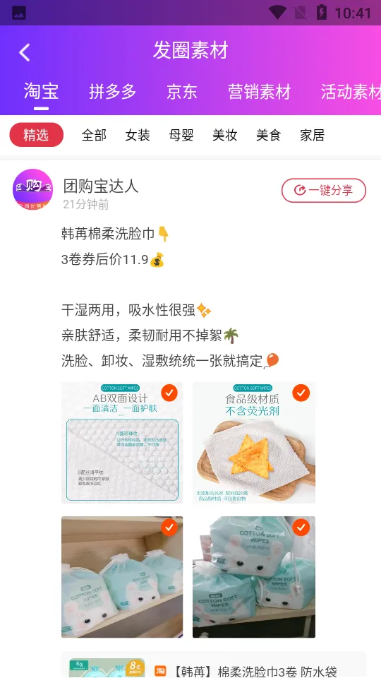 团购宝是一款超棒的手机购物软件!它能满足各种购物需求。这里有海量商品分类,不管你想买啥都能轻松找到。能领取大量优惠券,还有商家隐藏优惠券,超划算。参加团购活动,人越多价越便宜。它提供舒适购物体验,匹配功能推荐合适产品,部分产品付款后可直接提货,当地供应商送货上门。专业买家精心挑选好货,价格质量有竞争力。软件特色丰富,9.9包邮专场、限时秒杀等低价好物多。还能一键搜索领取淘宝天猫优惠券,心爱商品不用苦等降价。既能领券省钱又能返佣赚钱,支持分享商品得福利,跟踪订单了解物流,在线支付体验急速购物,添加购物车统一购买便捷,一键搜索商品精准找到目标,按分类浏览快速找心仪商品。更新后还有实时线报,运行加速,修复了bug,真的很不错!