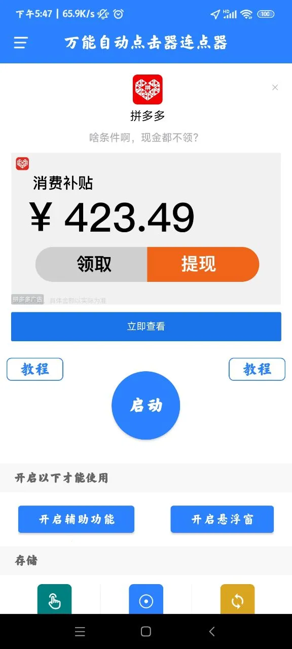 4、实时保存与一键启用:可一键设置操作指令,保存点击脚本,下次回来能继续使用,呈现完美点击效果。