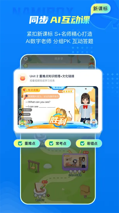 2. AI同步互动课堂:语数英物化生每单元配6 - 12节满分拆解互动微课,虚拟教师小组竞技,5分钟攻克一个核心考点,随堂弹幕答题即时反馈。