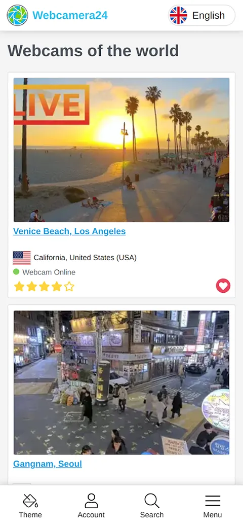 操作超简单,进入软件后,点击左上角语言选项切换成简体中文。在首页,能浏览各国实时摄像内容,点击进入就能查看。还能自行切换不同国家分区。输入目标位置,能快速找到对应的实况摄像地图。软件会根据浏览历史和喜好,智能推荐相关街景,提供个性化体验。足不出户,就能通过它领略世界各地的美景,感受不同的风土人情,简直太方便啦!快来下载体验吧!