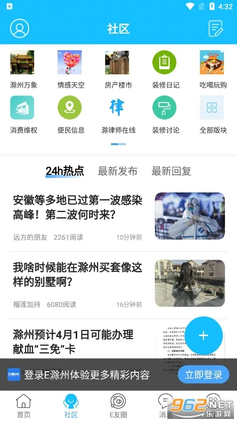 E滁州2026官方正版是专为滁州本地人打造的社交论坛及生活服务软件。是滁州门户网站与热门社交应用,含二手交易等生活服务,有海量用户、丰富视频,功能不断优化,能满足日常需求、助用户了解身边事并互动。