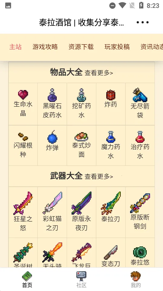 泰拉酒馆最新手机版是专为泰拉瑞亚玩家打造的攻略论坛软件。可查合成公式、boss等信息,支持离线使用。有武器图鉴、视频专区、社区板块及福利专区,能助玩家熟悉游戏、提升技能,轻松享受游戏乐趣。