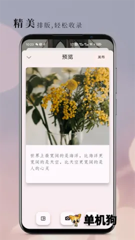 句摘是一款超棒的句子社区软件。它能解决你发社交动态却找不到文案的烦恼,汇集了海量优质句子、经典诗词、名家散文等。在这里,你可以阅读名家散文丰富阅历,轻松发现并收藏戳中内心的句子激发灵感,还有温暖的早安晚安问候语陪伴。用简洁美观的模板记录灵感超方便,深入古诗词世界提升文学修养也不在话下。能成为创作者或读者分享心得,记录私密日记释放情感,分享日常与他人紧密相连,分享触动心灵的句子鼓励好友。软件亮点多多,主题风格多样满足不同需求,一键发布动态迅速分享生活,句子资源丰富且实时更新,线上互动便利。其特色有无水印图片、极简风格设计等。每日更新美好句子,搜索高效,还支持个性化兴趣标签订阅。快来下载句摘,让文字与心灵对话,轻松收集与分享生活智慧吧!
