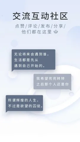 这是一个充满魅力的地方。在这里,你能沉浸于海量优质句子与经典诗词的海洋,无论是寻觅灵感,还是急需动人文案,它都能助力你轻松找到恰当表达。你可以用简洁美观的模板记录灵感,收藏共鸣的句子,尽情激发创意。阅读古诗词与名家散文,提升文学素养和阅历,还能成为创作者或读者,分享心得、记录日记、互动分享生活点滴。它主题风格多样,一键发布动态超便捷,句子资源丰富且实时更新,线上互动便利。在这里,你能与文字深度对话,找到心灵共鸣,收获温暖与力量,让思想在文字的滋养下愈发丰富深刻,是个能让人尽情享受文字魅力、不断充实自我的好去处。