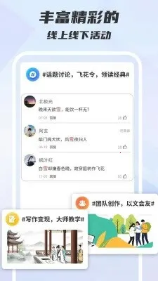 1. 活动丰富多样,覆盖作家课堂、好书共读、写文签约、趣味比拼等,用户可自由参与,感受不同创作乐趣。