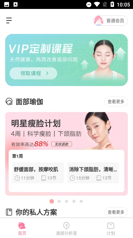 2、个性化定制:结合AI面部识别与皮肤检测技术,自动分析用户的肤质与面部特征,根据不同人的面部情况定制专属面部瑜伽动作,提供个性化练习建议。