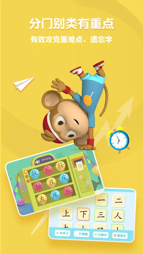 1、学习模式多样:提供各种各样的学习模式,能轻松帮助孩子启蒙,还可提高学习兴趣,让孩子在多种方式中快乐学习汉字。