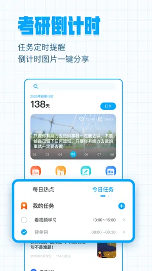 研友2025最新版本是专为考研同学打造的交流学习软件。有考研倒计时、研友圈等实用功能,能助考生快速了解知识融入状态。还提供院校资源,支持互动交流、发布动态,帮用户高效解决问题,轻松备考。