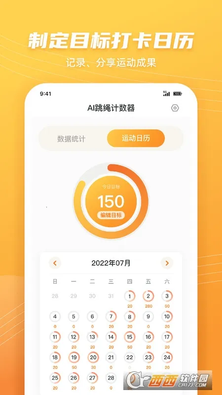 3. 打卡激励:能自行设定运动目标,在日历留记录,还可分享成果,激励自己坚持运动。