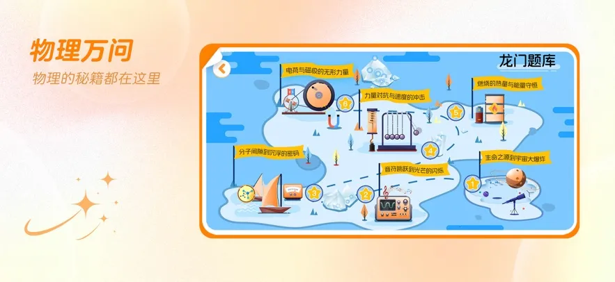 3. 可视化学习:通过关卡式地图展示知识路径,让孩子像玩游戏般完成物理主题任务。