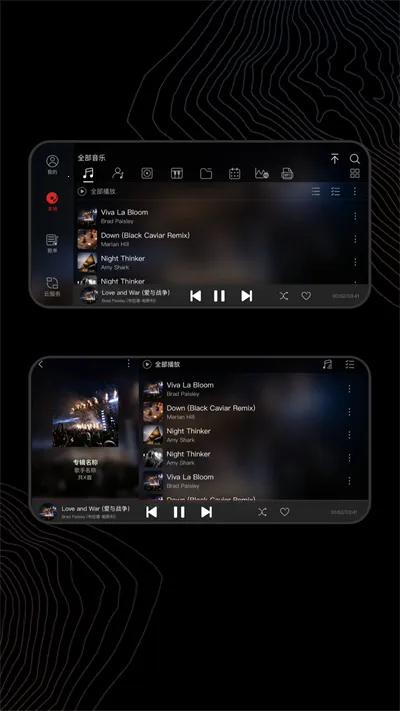 3、分类多样:用户可以对音乐进行详细的分类管理,支持全部歌曲、专辑按音轨号排序,还能按艺术家、风格、文件夹、自定义列表等分类播放,满足个性化需求。