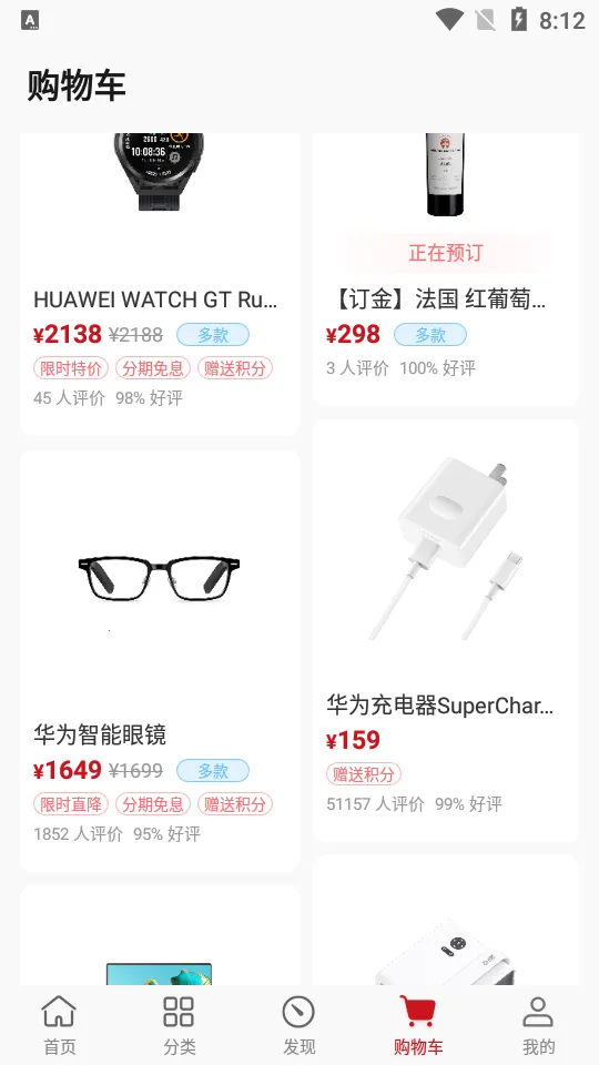 购物服务贴心,用户能方便地选择和购买华为品牌产品,通过商品种类快速定位所需产品。