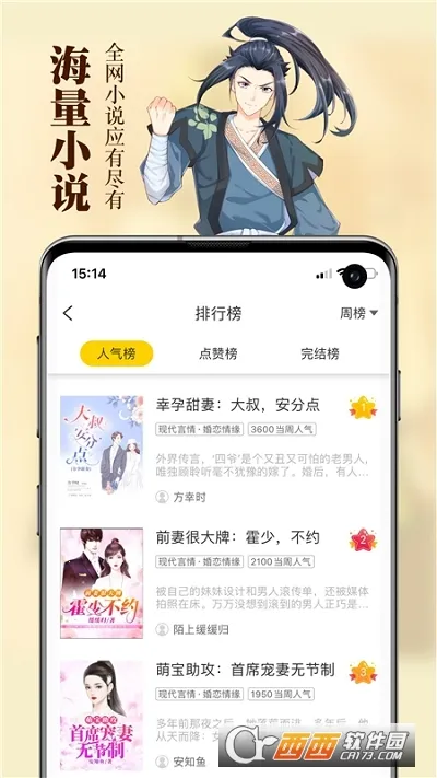 2、分类清晰找书便捷:涵盖玄幻、言情等多种类型,分类精准,榜单详细,助您快速找到心仪小说。