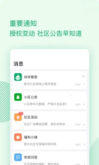 伴生活app是深圳伴生活科技有限公司推出的生活服务应用,与智能门禁匹配。提供手机开门、可视对讲、访客抓拍等功能,能优化社区服务、促进邻里沟通,还可接收物业通知,让生活更便捷智慧。