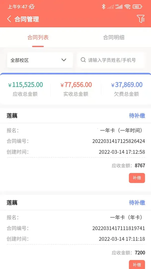 1. 高效学员管理:能一键添加学员至通讯录,随时查看剩余课时、购买记录及消课详情,全面掌握学员情况。