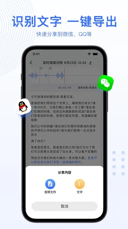 AI录音转文字是一款依托二十年智能语音识别研发成果的多功能应用软件。它基于专业AI智能识别系统,能快速准确地将语音音频内容转换为文字。可满足会议、采访、课堂等场景的录音及转文字需求,全面提升办公效率。