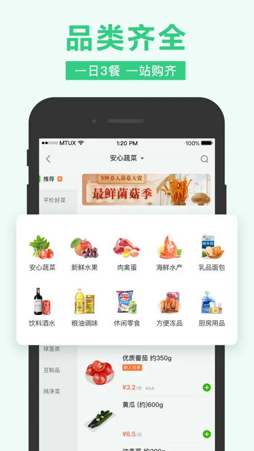 美团买菜 2026 官方正版是自营线上生鲜超市平台,商品丰富,最快 30 分钟送达。有专业质检,优惠多样,依托美团资源。界面简洁,支持多种支付,还提供菜谱,配送状态可查,3 元起送,满 9.9 元免运费 。