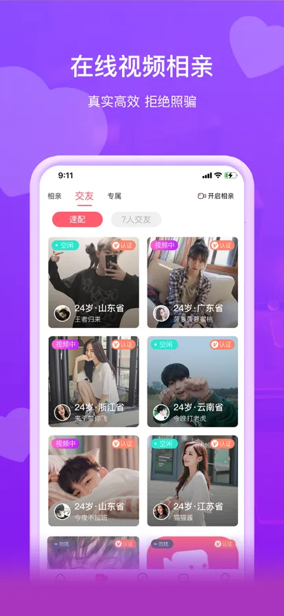 2. 多样交友模式:有视频相亲、速配相亲等模式。视频相亲可直接视频交流,速配能快速匹配对象,便于私信增进了解。