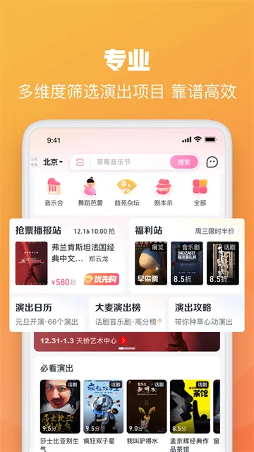 3. 特色福利多,低价折扣票、免费演出门票、粉丝专属礼品不定期发放,每天都有新惊喜。