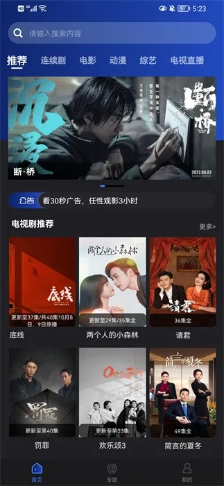 界面简洁易操作:采用极简设计理念,分类导航清晰直观。各板块一目了然,删除无关广告弹窗内容,用户可以快速定位目标内容,随时随地畅享看剧乐趣。