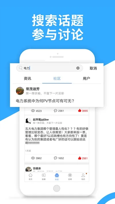 3. 强大社交互动:电力人交流社区,可互相关注成为好友,通过发帖、评论、点赞等互动交流,结交众多电力朋友。
