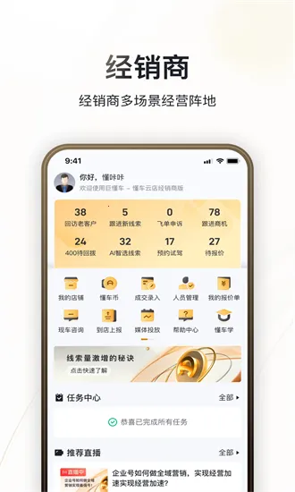 巨懂车商家版是一款专为汽车经销商打造的实用工具。登录后,你能畅享诸多强大功能。它有行业数据分析工具,可帮你优化供应链,提高资金周转效率,实现销售业绩提升。信用交易制度保障了交易的透明与安全,让你安心经营。还能聚合供应链体系全链路服务,降低流通成本。这里全国车型丰富海量,能帮你找到价格合理、风险小且供给稳定的车源采购渠道。其亮点众多,销售业绩数字化,收入清晰可见;能提高店面管理效率,降低运营成本;提供多种卖车小工具,提升工作效率;有效收集客户线索,一键电话联系客户,订单一手管理且可分类处理。巨懂车商家版登录后,能全方位助力汽车经销商,解决经营中的各类问题,带来极大的便利性,让你的汽车交易事业更顺畅。