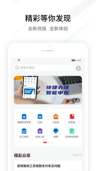 1、功能全面。涵盖社保、公积金、人事、健康、薪税、生活等多方面服务,如社保采集、社保卡查询、在线入职、健康评估、电子工资条申报等,满足多样需求。