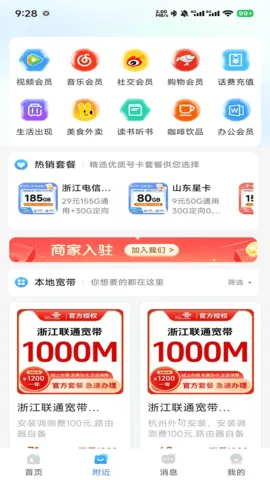 3、宽带业务同步:上线全国多省市宽带办理服务,资费透明无隐藏费用,支持在线比价与快速开通,让宽带办理更便捷。