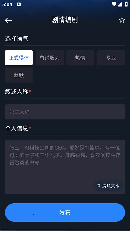 它是一款集聊天对话与文本创作于一体的软件。其对话互动十分自由,能满足情感陪伴、兴趣交流等需求。提供多种预设AI角色,每个角色人设和交流风格独特,让对话更有趣味。文本创作功能强大,覆盖多个场景,从作文、脚本到简历等都能一键生成。还支持自定义AI对话,可打造专属智能AI。无论是想找人聊天,还是寻求文案创作帮助,它都能提供支持。使用时操作便捷,输入关键信息就能快速获得结果。能一站式满足用户的AI辅助需求,提升交互体验,值得一试。
