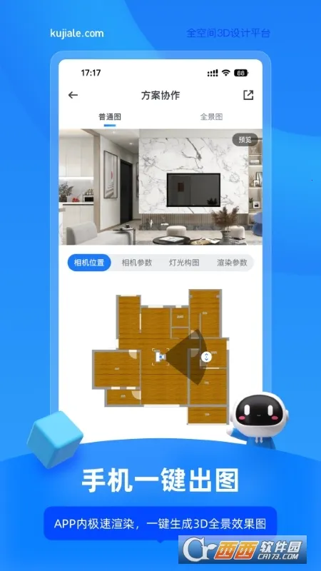 2、快速出图:10秒出高清效果图,5分钟产出装修设计方案,效果图立等可取,能快速向业主证明专业度,提高接单成功率。