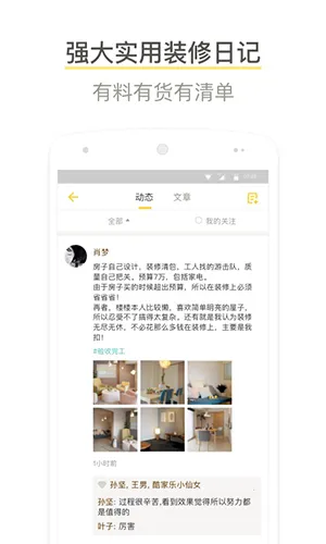 4、特色功能多:支持VR全景家装方案全景漫游,支持VR眼镜,身临其境体验装修效果;有室内设计师和大牛业主帮你免费户改;能免费获取户型风水动静线采光等多维度评测信息和改进建议;还有装修干货、专题、业主心得交流,装修攻略分阶段查看,几十个专题供学装修;更有装修工具、装修任务流程、装修记账、装修计算器等实用且免费的功能。
