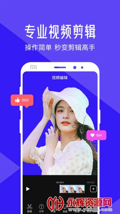 1. 功能丰富多样,支持视频剪辑拼接、裁剪分割、调速倒放、打码、添加字幕贴纸滤镜特效等,还能制作电子相册、卡点特效视频等。