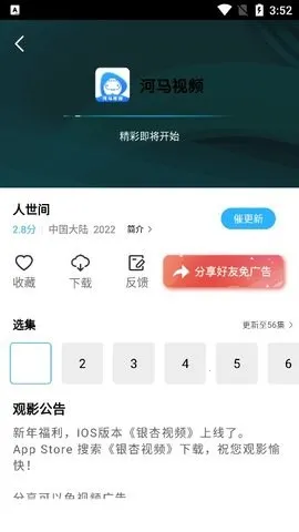 河马视频追剧app优势显著。**免费无广告**,能让你舒适追剧,无需为广告打扰。资源超丰富,国内外各类影视、综艺、动漫等应有尽有,且实时更新。播放超流畅,支持多种画质选择,适配不同网络与设备。具备离线缓存功能,网络好时可提前下载,无网也能随时看。还整合多家知名平台资源,一部应用覆盖全网热门。强大搜索引擎,关键词查找热门资源超便捷。支持个性化设置,给你最舒适观影体验。