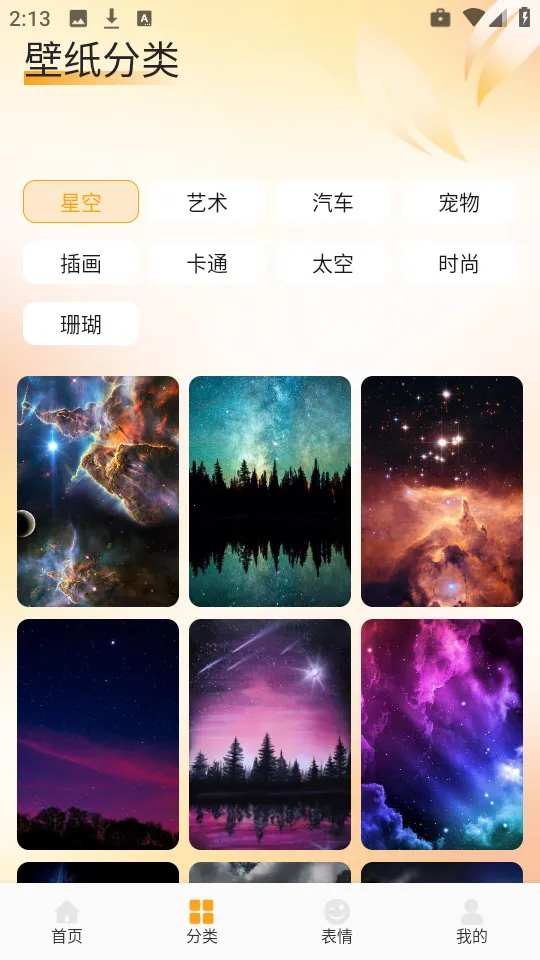 1. 分类丰富:拥有星空、卡通、萌宠等多种视觉分类,方便用户按喜好筛选浏览壁纸。