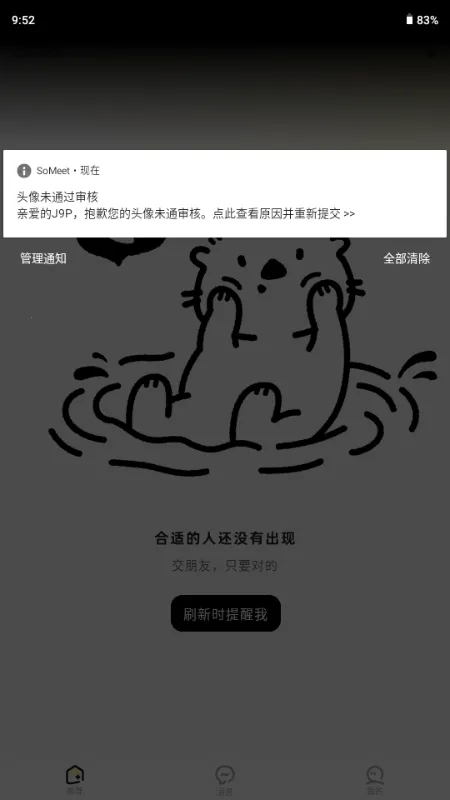 SoMeet致力于打破线上社交局限,鼓励用户将交友从虚拟延伸到现实。每天中午12点,它会根据用户同城位置推荐有趣小伙伴,用户能直接向感兴趣对象打招呼,成为好友后可发起线下邀约。这种模式让交友不再局限于线上热聊,有效避免了线下无交集的无效社交困境,为用户带来真实社交体验。与其他交友软件不同,SoMeet更注重将线上交流转化为线下见面,使交友变得更加真实和有意义。对于那些渴望突破虚拟社交,追求真实交友体验的人来说,SoMeet是一个不错的选择。它能让用户结识同城有趣的人,拓展社交圈子,收获更多真实的社交互动,助力用户找到更契合的朋友,享受不一样的交友乐趣。