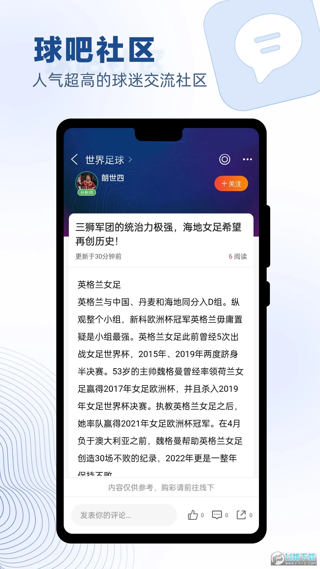 3、便捷功能体验:可随时查看感兴趣比赛,还能观看转播视频,轻松实现社区互动吐槽,让观赛更具乐趣。