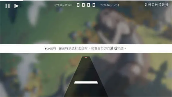 5、校准完成后进入教程,在音符到达打击线时,顺着音符方向滑动轨道。