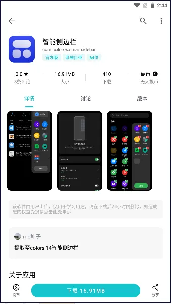 智能侧边栏这款软件超实用。它能把常用应用和开关固定在侧边栏,快速启动超方便,比如工作时开小窗调用计算器、记事本等工具,提升效率。看电影或玩游戏时,通过侧边栏能快速回复消息、调整设置,不中断体验。还能自动检测未读消息并显示图标提醒。它支持自定义侧边栏位置、大小、内容,适配不同习惯。操作逻辑简洁,不占主界面空间,滑动唤出顺手,集成搜索功能,支持分屏操作,功能集中整合,让手机操作更连贯流畅,能满足各种高频操作需求,大幅简化操作流程,给你带来前所未有的便捷手机使用体验。