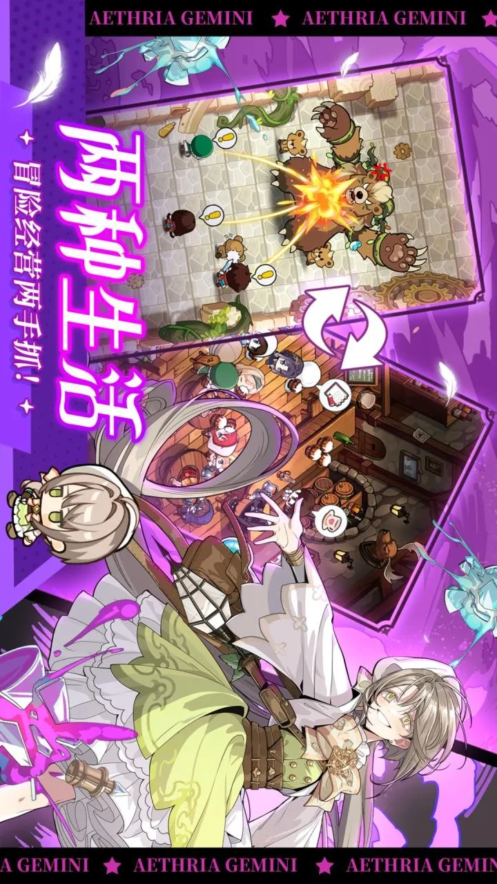 晴空双子2026下载安装,这是一款异世界冒险角色扮演卡牌手游。玩家扮演角色在苏美鲁冒险,集结伙伴挑战命运,揭开巨藤秘密。有多种玩法,如弹射战斗、经营庄园等,快来下载开启精彩冒险。