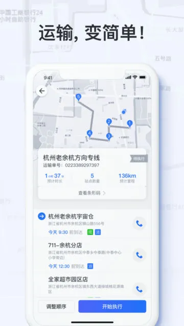 3、丰富实用的功能 具备扫码装车、全局搜索、电话联系、异常反馈、数据统计等功能,如通过摄像头扫描单号快速装车,一键搜索运单相关信息,一键拨打客户电话,拍照取证免责,查看历史派送数据等。