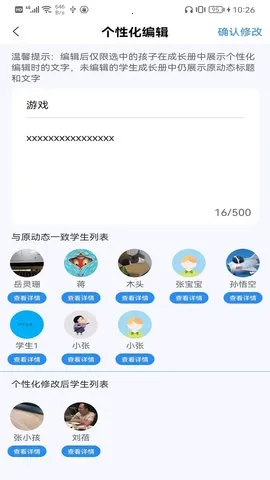 成长足迹教师端优势显著。它能方便地切换学期,对幼儿成长数据分类管理。教师可轻松挑选照片添加到成长相册并编辑发布动态,让家长及时了解园所情况。录入成绩一键推送家长,还能实时点评幼儿。其管理便捷,操作轻松,能精准搜索活动范例。精彩动态展示各班生活动态,发布亲子任务增进亲子关系。能全面记录学生成长足迹,无论是添加学生、班级管理,还是创建活动范例等功能都十分实用,助力教师高效管理班级,为幼儿成长提供有力支持。