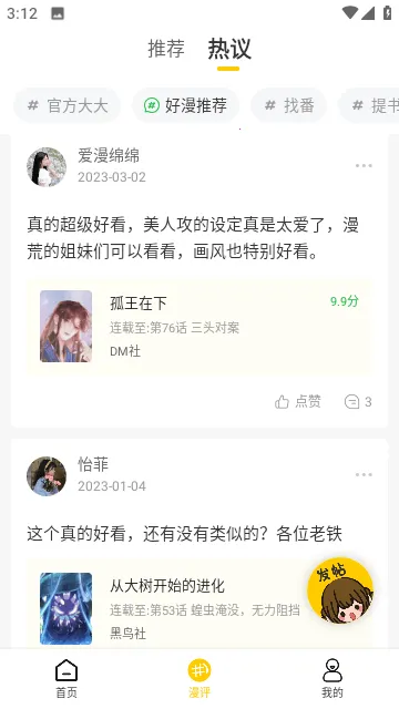 玉米漫画能满足你画简笔画的需求哦!它可是超棒的漫画阅读助手。这里涵盖各种类型漫画,每天首页更新热门漫画,全免费。软件功能超强大,无广告干扰,让你沉浸阅读;高清画质,细节色彩超棒;操作流畅,加载快翻页平滑。精选漫画库,题材风格多样。特色也不少,操作简单,质量有保证,还提供全方位服务。版本亮点多多,有全彩漫画、无广告浏览、快速加载,还能自定义阅读方式。优势明显,海量资源,更新及时,能满足追番需求,热门连载和经典旧作都有。而且它还提供离线阅读功能,没网也能随时看。有了玉米漫画,画简笔画找灵感或者看漫画都超方便,赶紧来体验吧!
