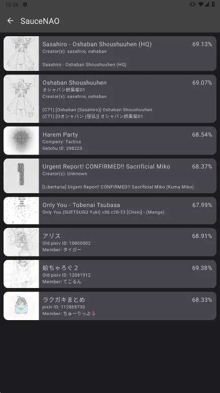 如果你遇到了SauceNAO Error,别担心!有一款超棒的软件能帮你解决问题。它就是saucenao安卓版app,这可是个强大的图片识别工具。它专注于动漫插画、游戏人物及相关周边图像识别。不管是保存的动漫角色截图,还是游戏里的精美场景、插画壁纸等,只要简单上传,平台就能自动扫描分析,快速定位图片来源。比如你不知道一张喜欢的动漫人物图出自哪部作品,用它识别后,能直接告诉你对应的动画漫画名称,甚至具体剧集或章节,连同人创作的画师和发布平台都能查到。它支持多种图片格式,界面简洁,操作简单,上传后几秒就能看到结果列表,每个来源都标注了相似度和具体链接,点击就能跳转查看原图或相关作品。有了它,找图片出处、挖掘同系列作品都轻松高效,超实用!