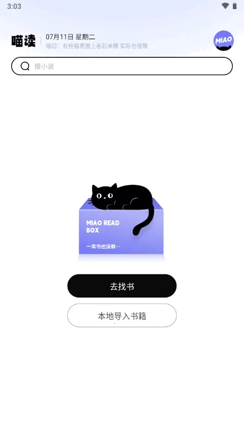 想在喵喵阅读里找书超简单!打开软件,点击搜索按钮,就能查询喜欢的图书资源啦。不管你想看什么类型的小说,都能通过这个功能快速找到。它能节省你大量时间和精力,不用再费劲翻找。而且软件还支持关键词搜索,只要输入相关字词,想看的小说立马呈现。在我的书架导入个人图书后,也能在这个界面搜索图书。有了这么便捷的搜索功能,你可以随时随地开启阅读之旅,尽情畅游在书的海洋。无论是热门小说,还是小众佳作,都能轻松找到。还等什么,赶紧用喵喵阅读搜索你心仪的书籍,享受便捷又丰富的阅读体验吧!