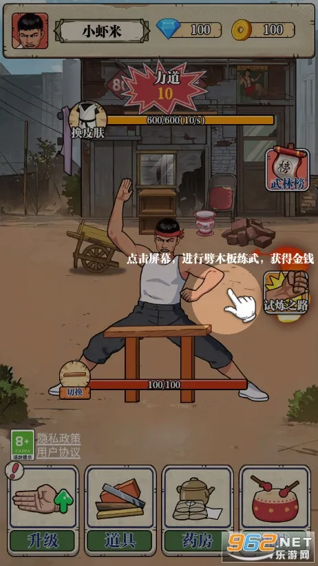 劈砖大师免广告版是放置经营类手机小游戏,玩家扮演劈砖高手开启旅程。通过放置养成、参与活动解锁玩法,有丰富彩蛋与特色玩法。可挂机修炼,凭点击滑动操作,还有多样道具、成就系统及竞技等,抖音小程序可玩。