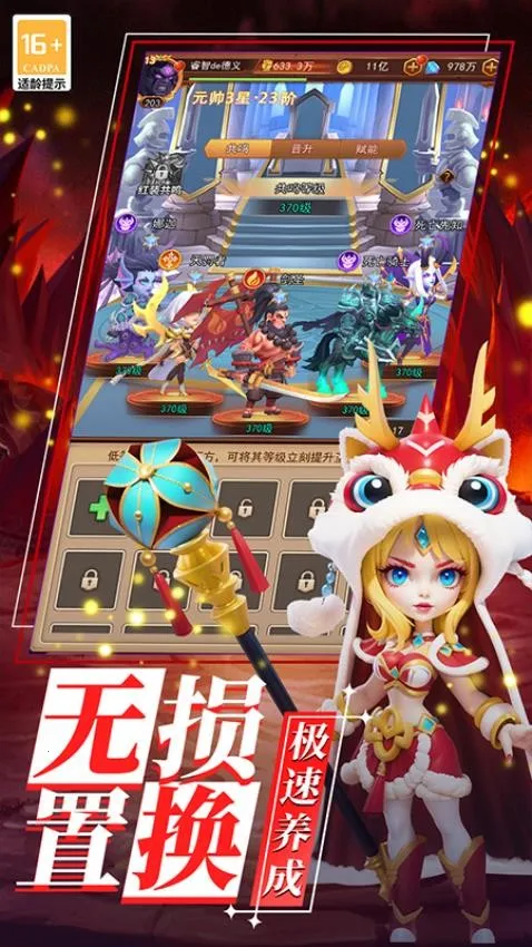 玩家可以通过培养升级解锁天赋以及进阶等方式,打造属于自己的强大英雄阵容,体验养成的乐趣。游戏还提供了多种新颖玩法,如无尽试炼、跨服争霸、成神之路等,带给玩家不一样的冒险体验。