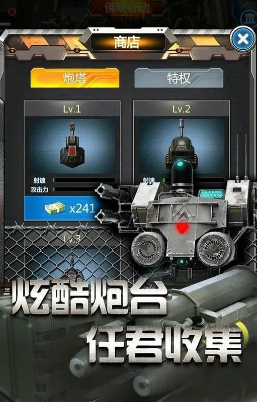 2. 多样炮塔组合:游戏中拥有超多不同类型的炮塔,不同的炮塔攻击力也不相同,玩家可以将两个相同的炮塔进行合并升级,会得到更加高级的炮塔,攻击力更强,策略性十足。