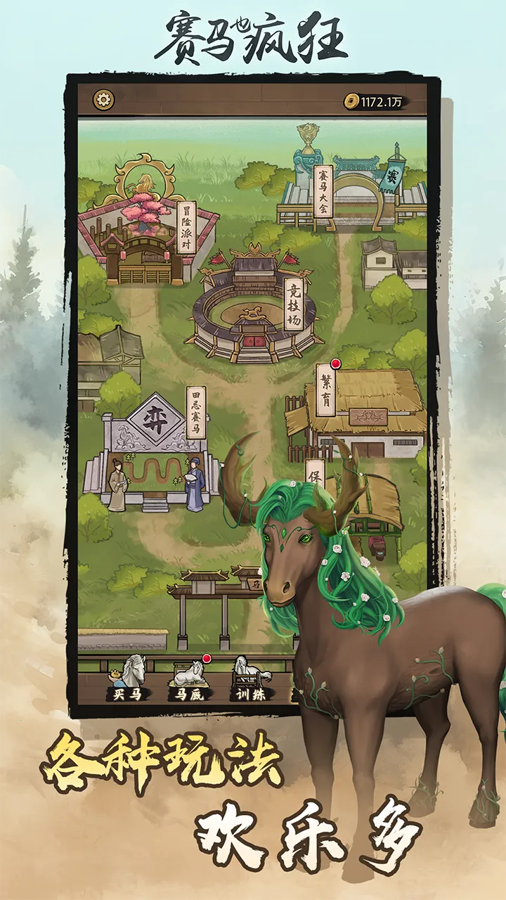 赛马也疯狂是款模拟经营游戏,玩家经营马场,从选马、培育到训练参赛。有多种属性马匹、丰富赛道,真实谈判砍价,能与马亲密互动,通过比赛赢奖励壮大马场,离线也能畅享赛马乐趣